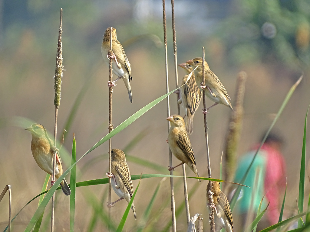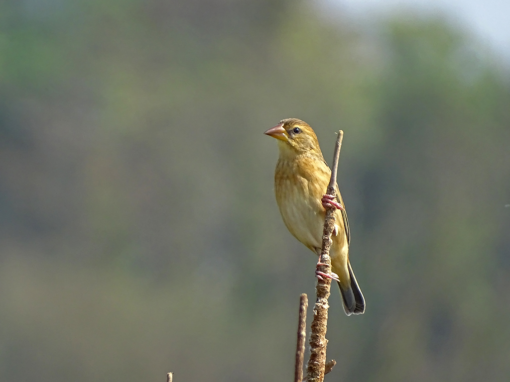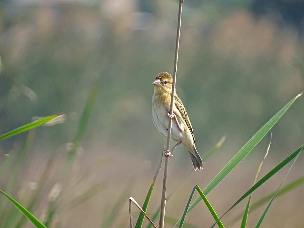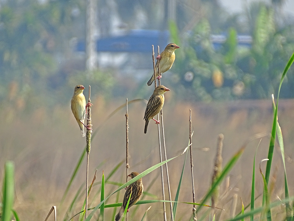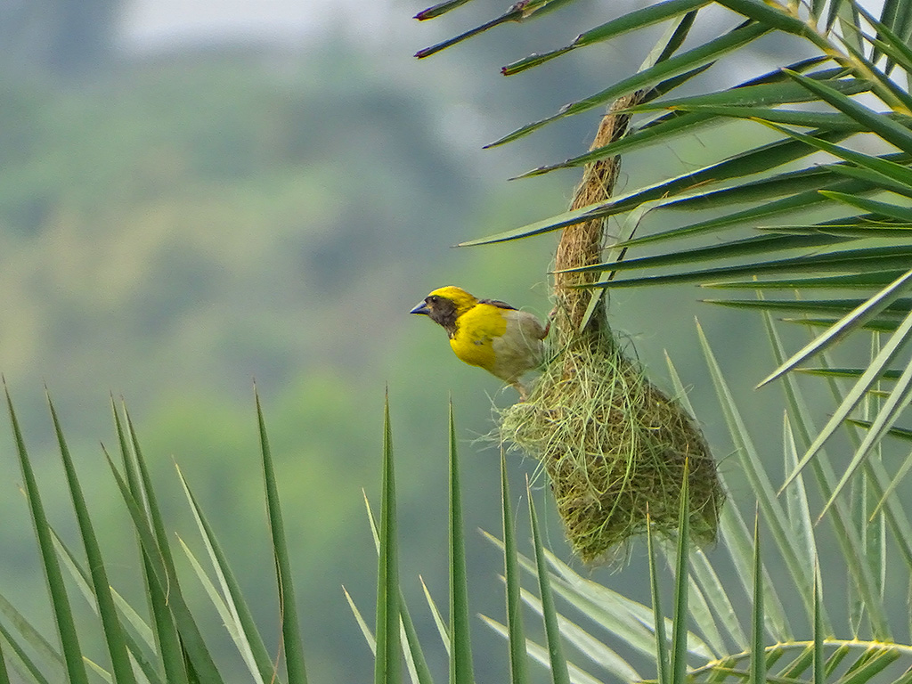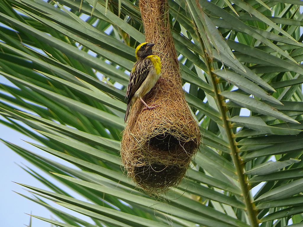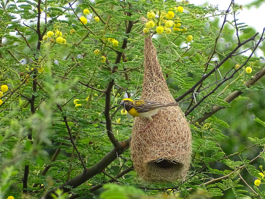 An absolutely beautiful, tiny little weaver bird. It is fascinating to watch the male bird build its nest during the breeding season. They prefer living in colonies and are generally found in flocks. During the breeding season, the male bird looks vibrant with its yellow head and belly. During the day, the male bird continuously collects materials from nearby areas and keeps weaving its nest to impress the female. For the Baya weaver, it is very challenging to impress a female bird by creating the perfect and beautiful nest; otherwise, the female will abandon it, even if it has already been built. Without a suitable nest, they cannot breed.