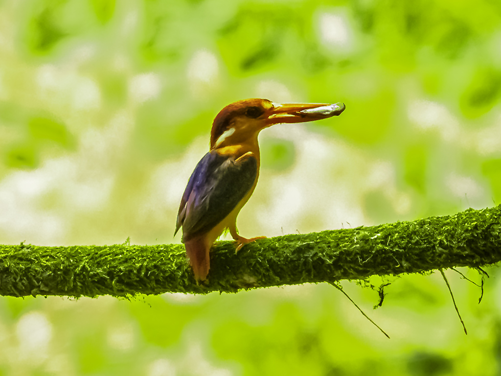 This bird is typically visible for a few months during the monsoon, especially when it has a nest and chicks. The parents are responsible for hunting prey such as lizards, crabs, small fish, grasshoppers, spiders, etc. They bring the food back in their beaks, sitting for a few seconds before returning to the nest. They build their nests by digging holes in the bank of a river or near adjacent foothills. Depending on the availability of prey, they appear at various intervals. In Karnala, the bird is visible in the morning from 7 to 10 a.m. and in the evening from 3 to 5 p.m., with intervals of 20 to 30 minutes between visits before disappearing for another hunt. I hope to see this bird more frequently in other parts of the Western Ghats and will try to upload more images to this page.