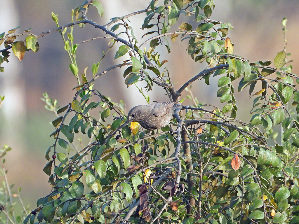 | Approximate size(adult): | A medium-sized thrush, about 20–23 cm in length. Males are bluish-grey overall with a slightly darker head and wings, while females are brownish-grey with faint streaking. Both sexes have a slim bill and upright posture.