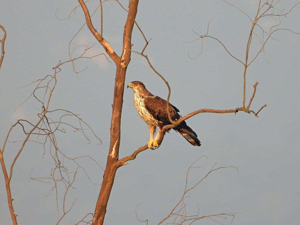 During October and November, those of us who live in Bangalore often hear about Bonelli’s eagles being present in the Bannerghatta hilltop area. I never had the chance to observe them as the exact location was not shared. This year, I learned that they perch around the eucalyptus forest behind the hilltop temple area after 10 a.m., when the sun starts getting harsh. On that day, we were about to return from the Bannerghatta hilltop after 10 a.m. when we noticed all the raptor activity beginning. Among them were Booted Eagles (white morph), Greater Spotted Eagles, and Shikras. Suddenly, we saw two Bonelli’s eagles appear and start playing around. At first, I didn’t realize they were Bonelli’s eagles. A few seconds later, when they both perched on a nearby tree, I was stunned by what I had just witnessed—two majestic Bonelli’s eagles right in front of me. I started taking pictures and videos and managed to capture some moments. Unfortunately, due to some overly excited birders with me who tried to approach the birds too closely, both eagles flew away. Otherwise, I could have taken more beautiful pictures. The pair seemed to be engaged in courtship activities and were possibly preparing to start nesting.