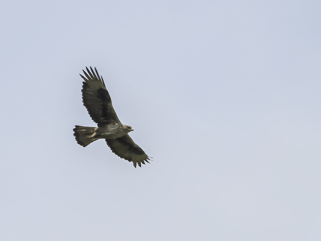 During our Saswad tour in September, we spotted four pairs of Bonelli's eagles on the hilltop where people often photograph Striolated Buntings. These two individuals were perched on a high extension electric tower, a spot where most raptors typically sit. Unfortunately, they were too far away to capture clear pictures, no matter how close we tried to approach. After a few minutes, they flew away. Since eagles generally fly slowly, it’s usually possible to get a few flight shots, but the challenge sometimes lies in the direction of the sunlight.