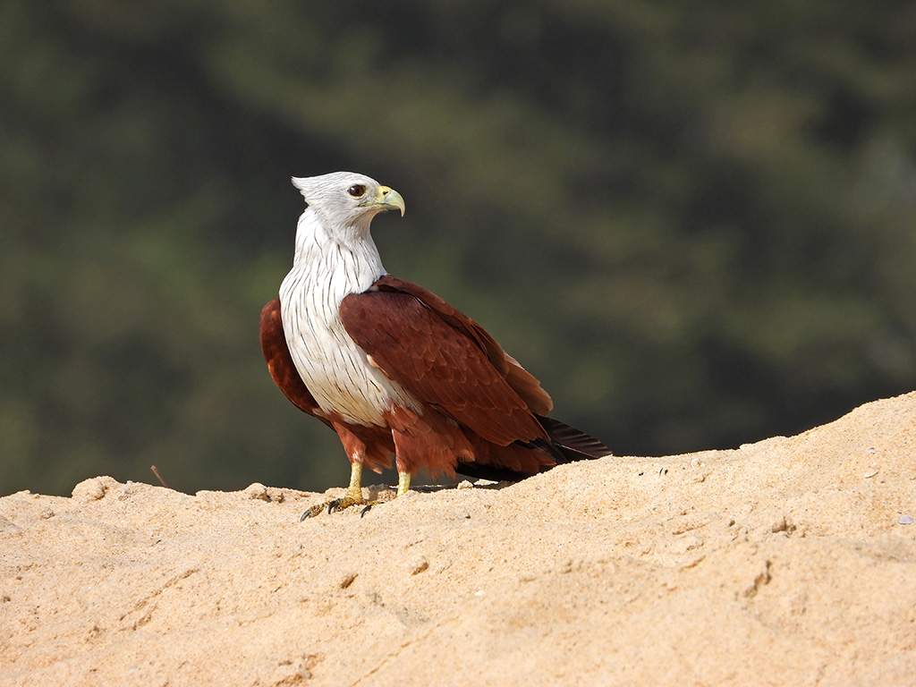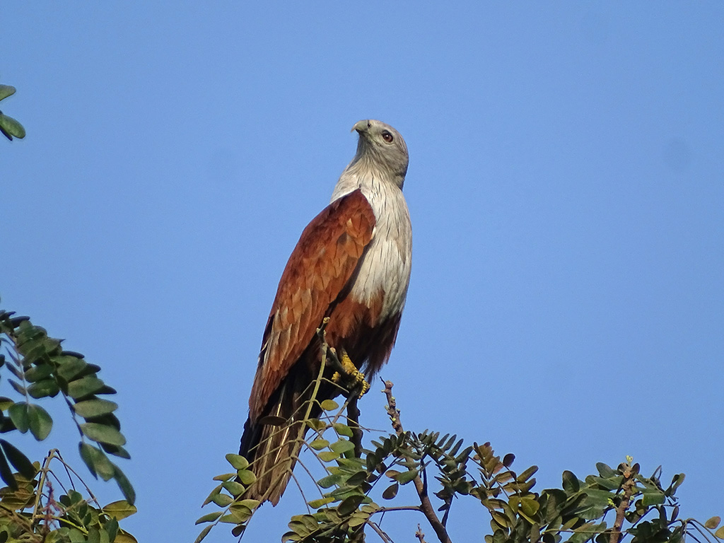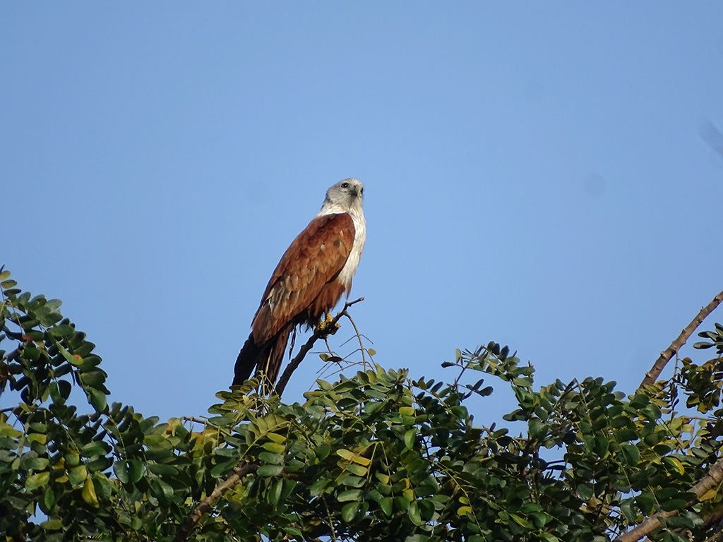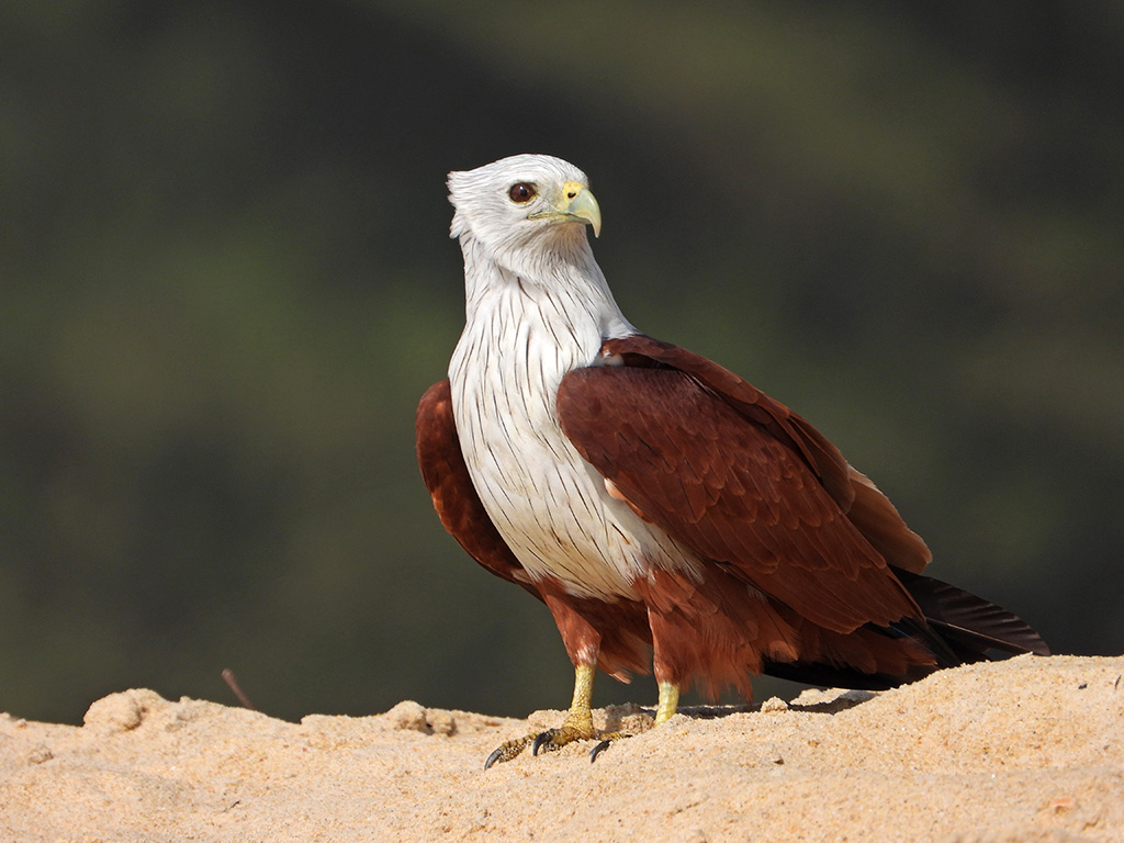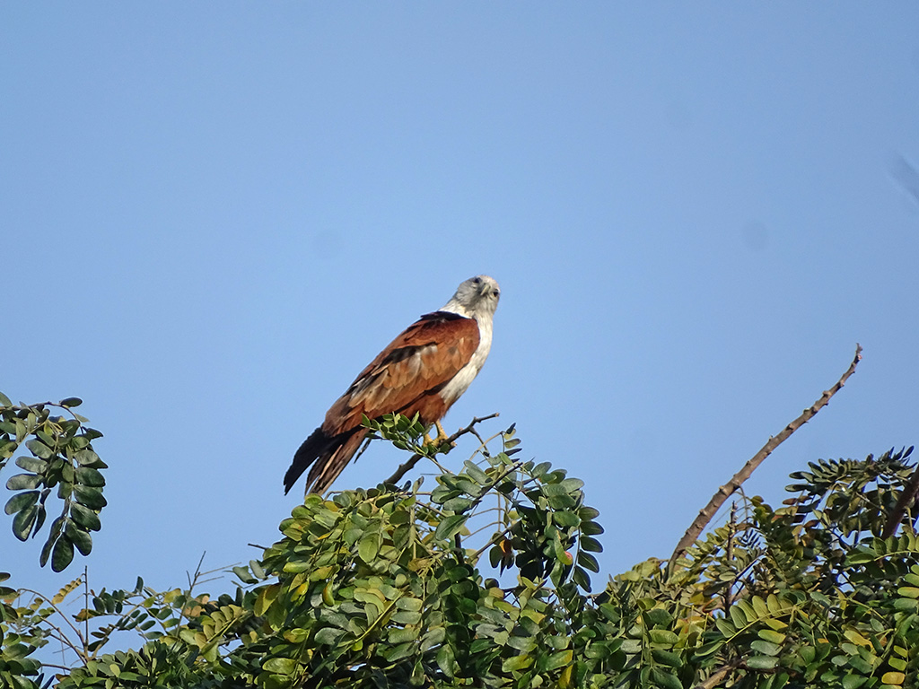 | Approximate size(adult): | Medium-sized raptor measuring 45–51 cm in length with a wingspan of about 110–125 cm. Recognizable by its chestnut body, white head and breast, and rounded wings. Juveniles are browner and duller.