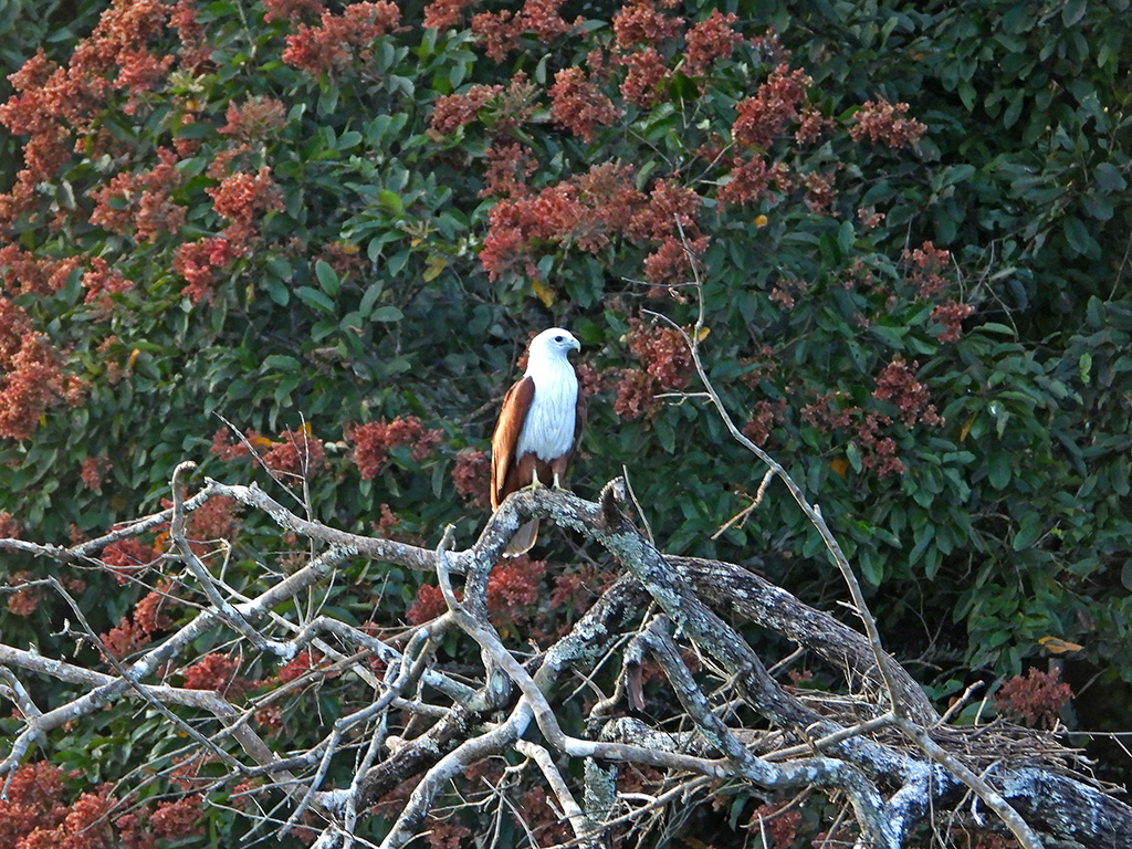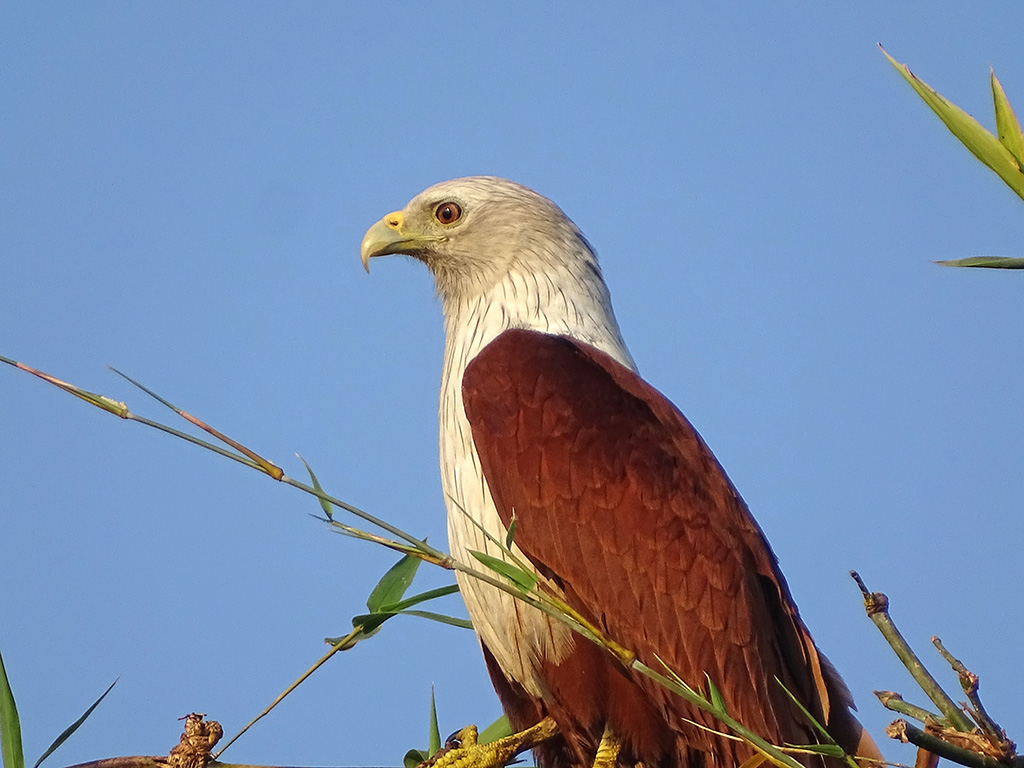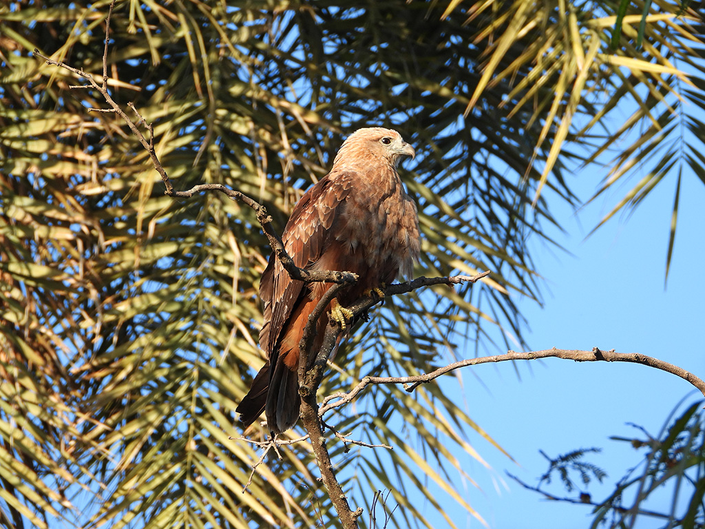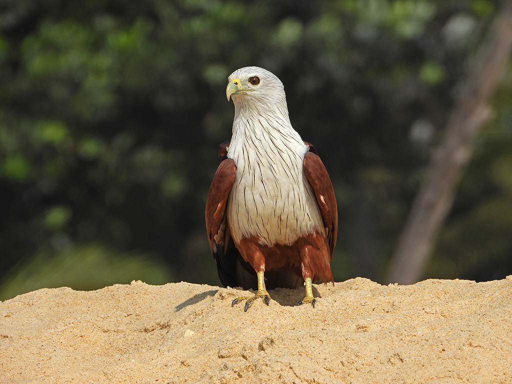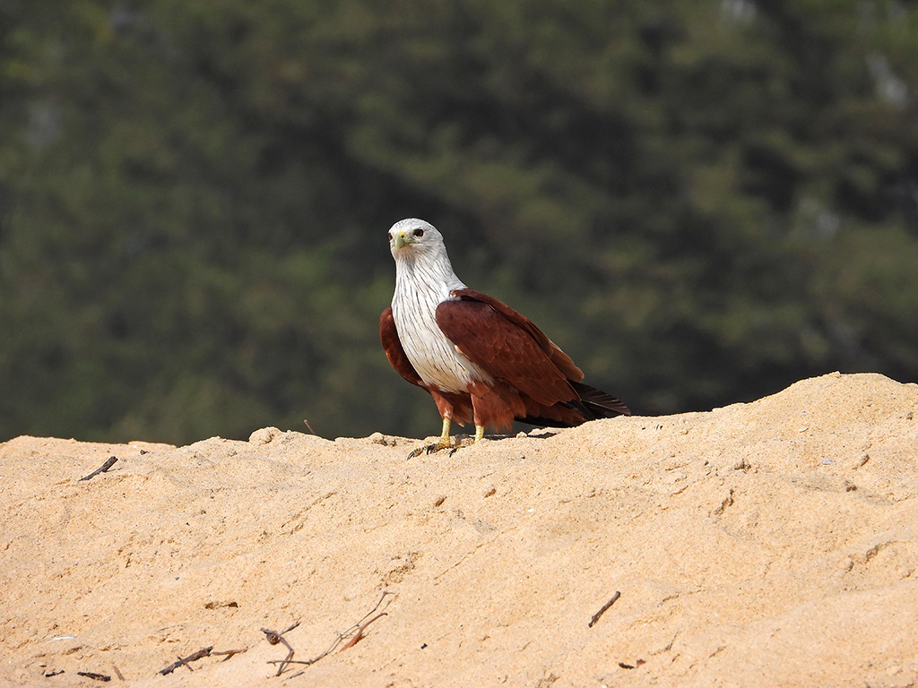 | Approximate size(adult): | Medium-sized raptor measuring 45–51 cm in length with a wingspan of about 110–125 cm. Recognizable by its chestnut body, white head and breast, and rounded wings. Juveniles are browner and duller.