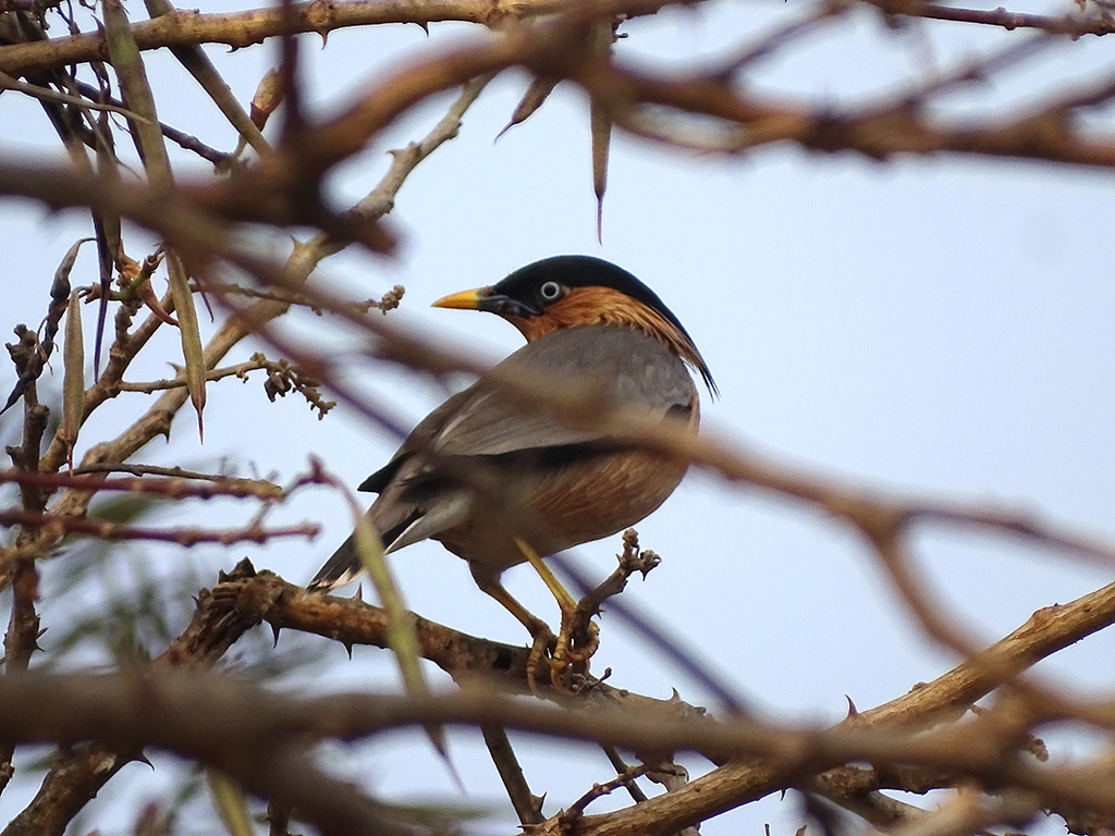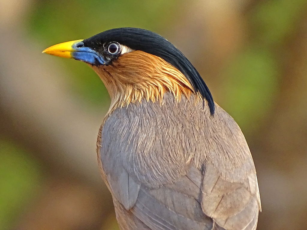 | Approximate size(adult): | About 19–21 cm in length; weight around 60–90 g. It has a buff-colored body, black cap, and bluish base to the bill. Both sexes look similar, though males have slightly glossier plumage during breeding. The crest on the head gives it a distinctive look.