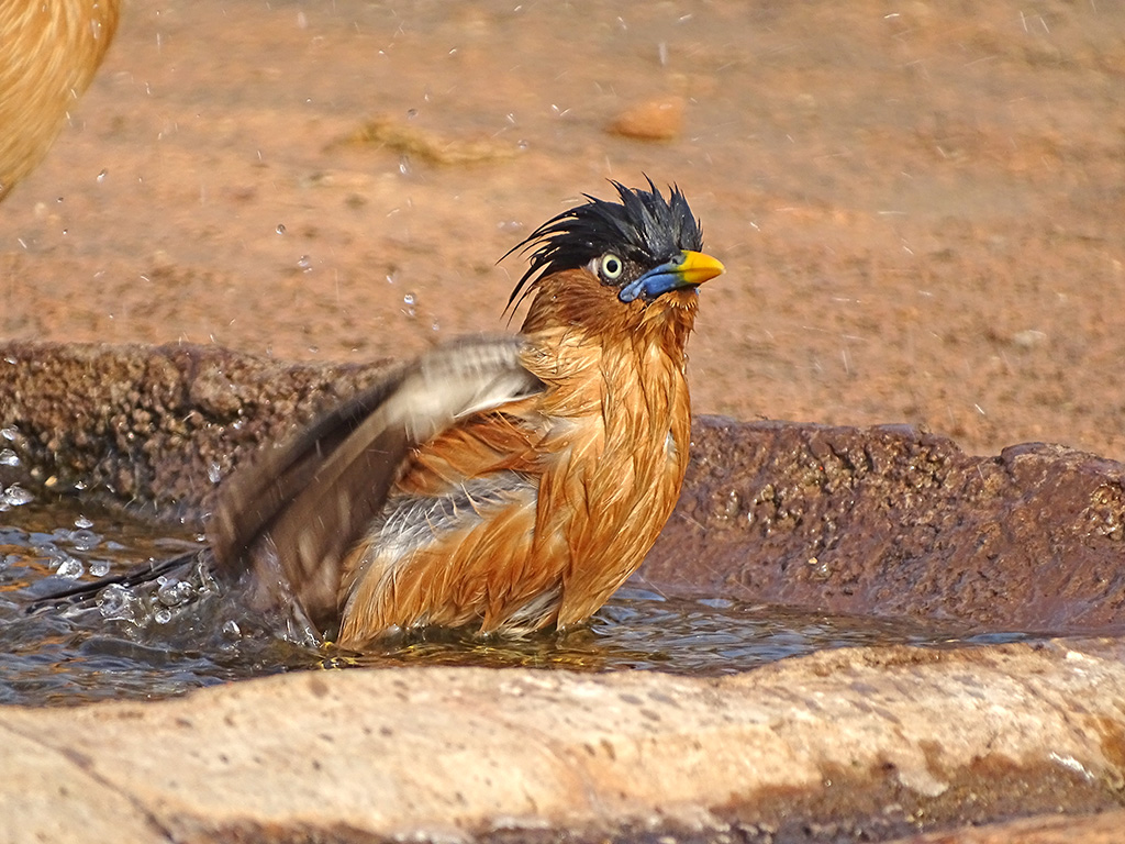 | Breeding season: | March to September, peaking before the monsoon. Courtship includes singing, crest-raising, and mutual preening.