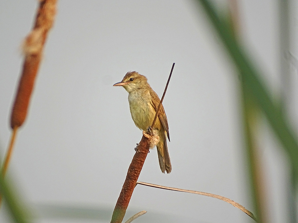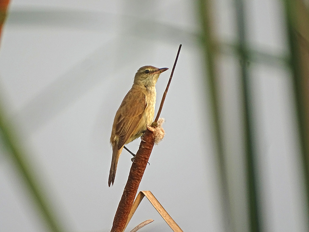 Medium-sized warbler, about 18–21 cm in length. Brownish above with a long, strong bill and pale underparts; slightly larger and bulkier than other reed warblers.