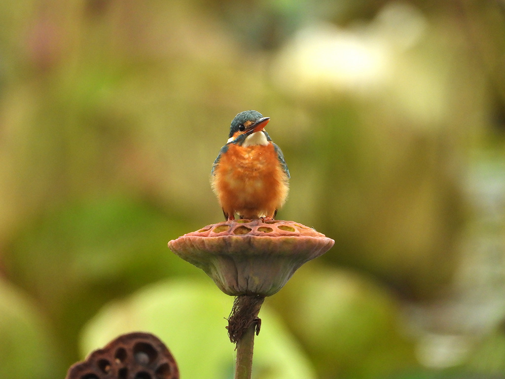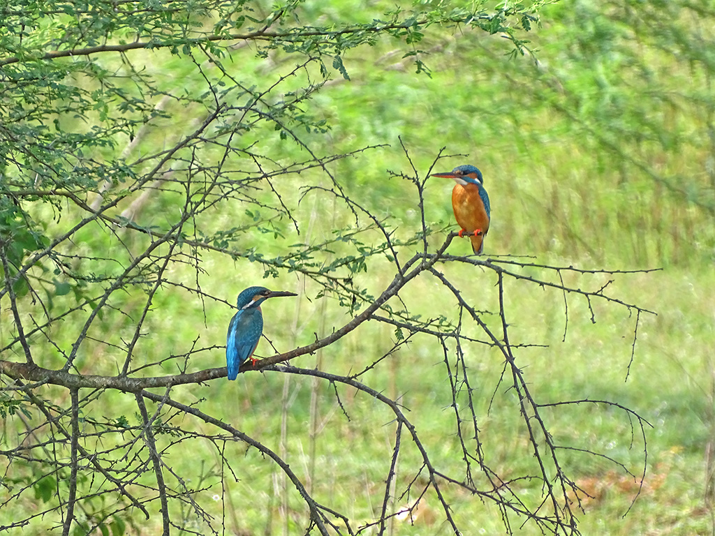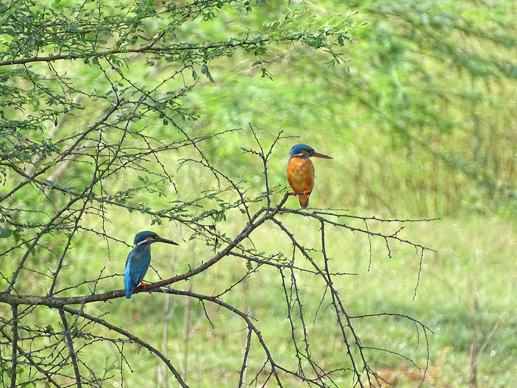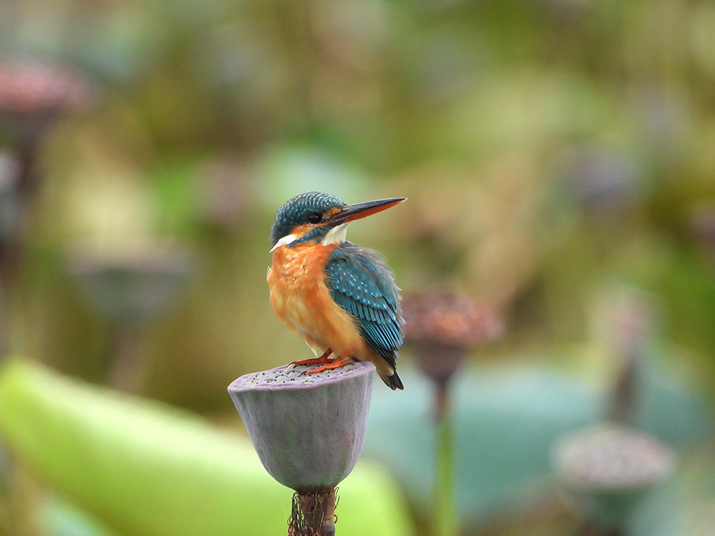 | Approximate size(adult): | Length about 16–17 cm; wingspan 25 cm; weight around 30–40 g. A small, brilliantly colored kingfisher with bright blue upperparts, orange underparts, and a long, sharp black bill. The blue back glows iridescently in sunlight.