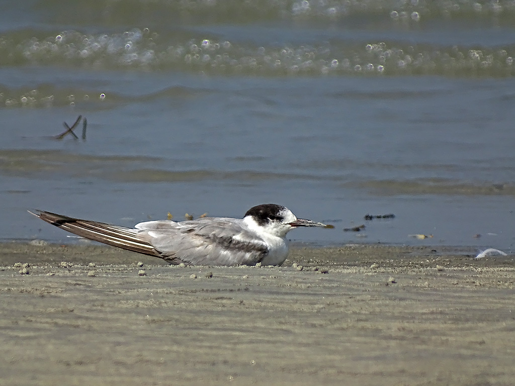 | Approximate size(adult): | A medium-sized tern measuring 31–35 cm in length with a wingspan of 76–91 cm. Adults have pale grey upperparts, white underparts, a black cap on the head, and a red bill with a black tip. Legs are reddish.
