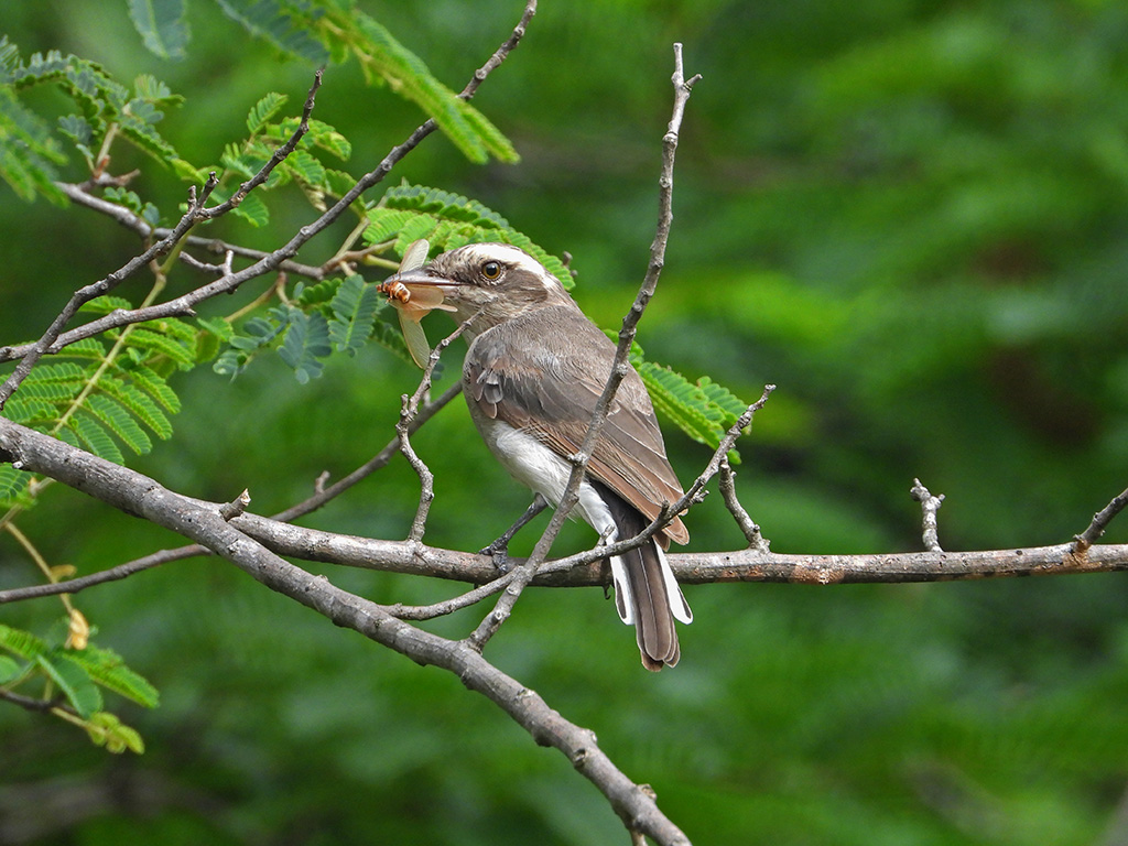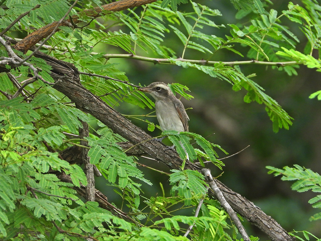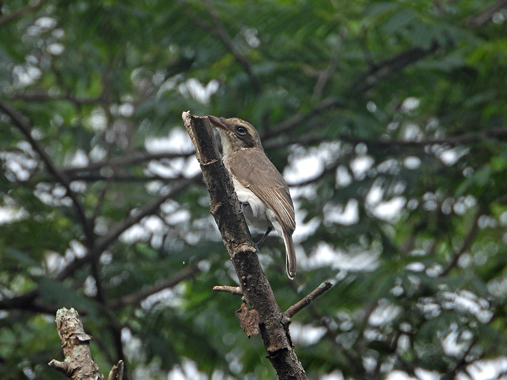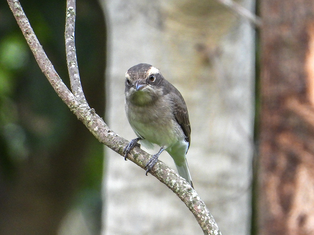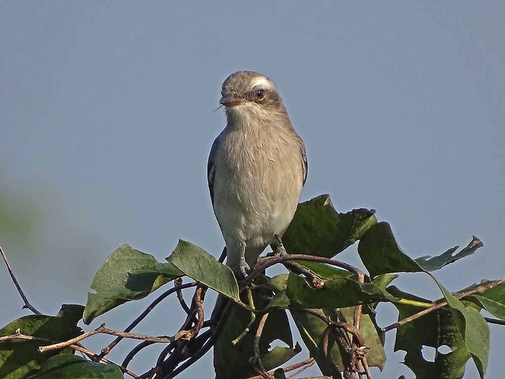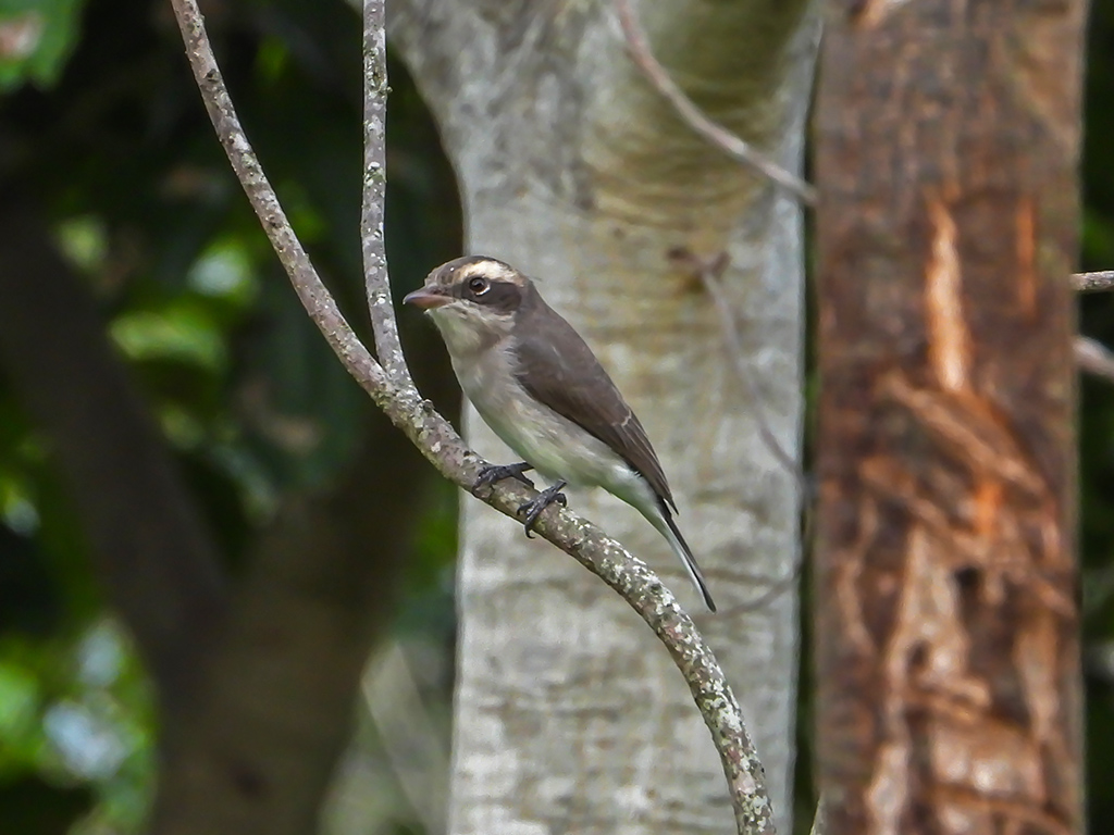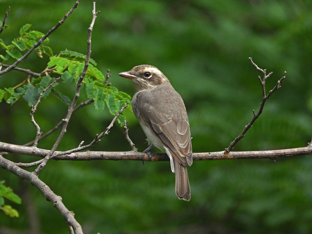 | Approximate size(adult): | Length about 14–16 cm; weight around 20–25 g. A small, stocky bird with ashy-brown upperparts, paler underparts, and a distinctive white eyebrow. The bill is strong and slightly hooked, adapted for catching insects.