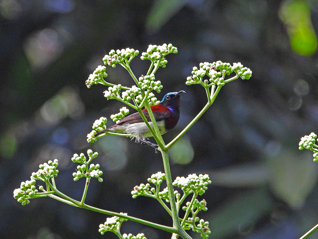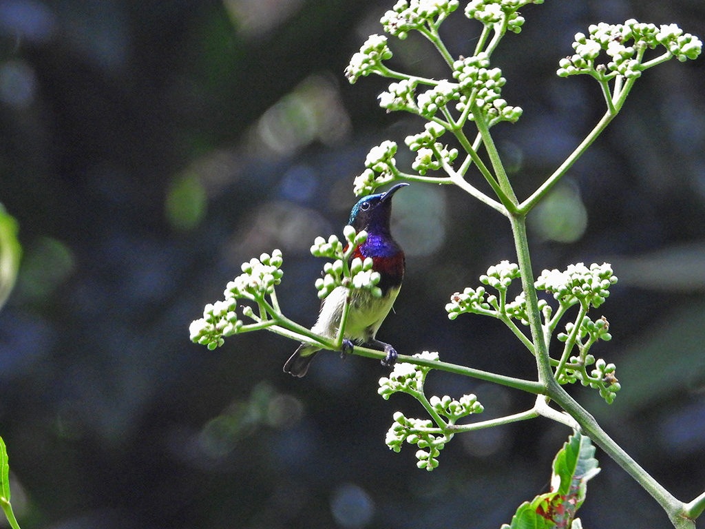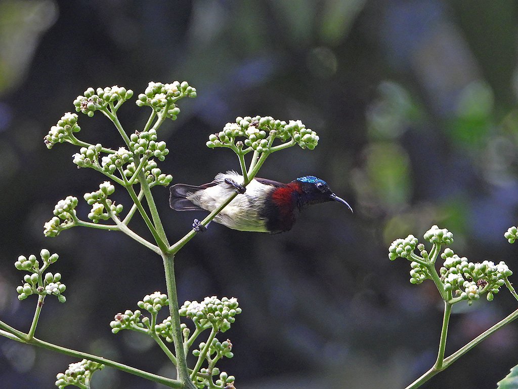 | Habitat: | Found in evergreen forests, coffee plantations, gardens, and forest edges of the Western Ghats. Often forages in flowering trees and shrubs.