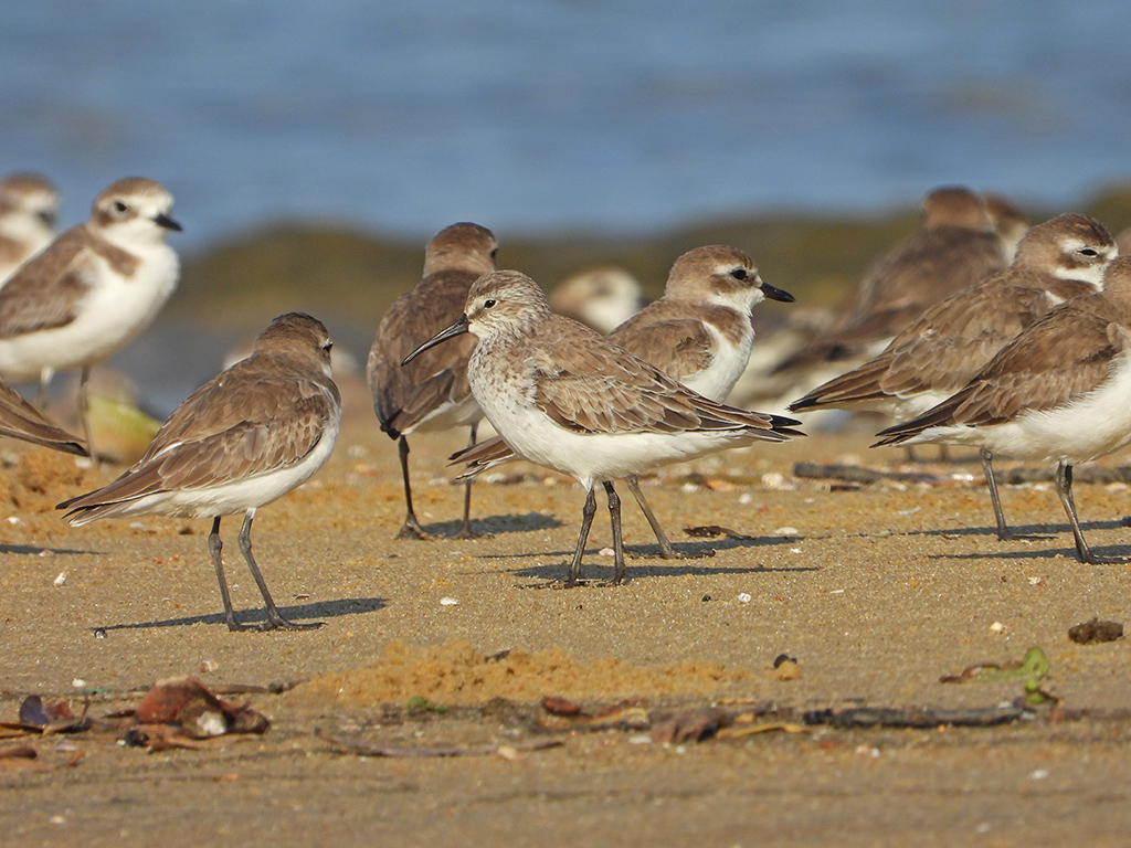 | Habitat: | During migration and winter, found in coastal mudflats, estuaries, salt marshes, and sandy beaches. Often forms large flocks with other waders.