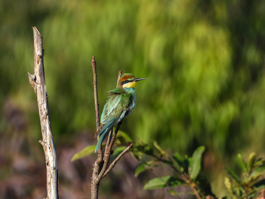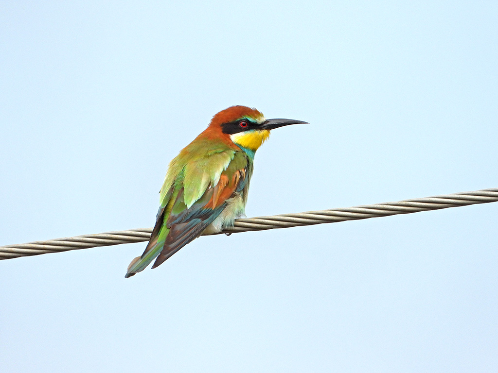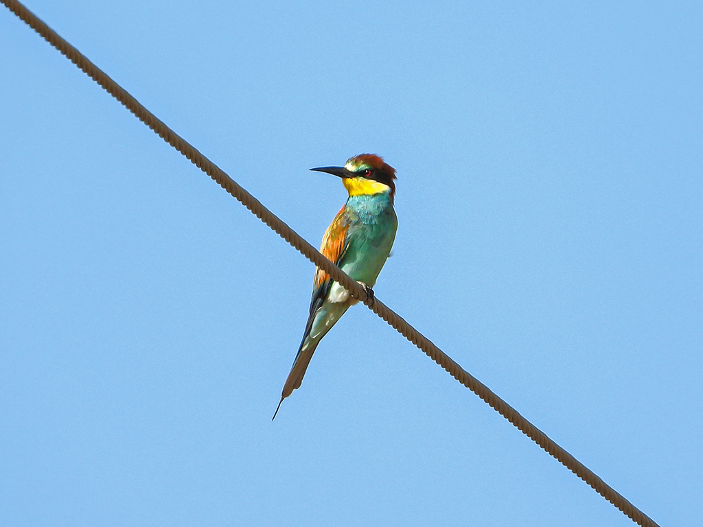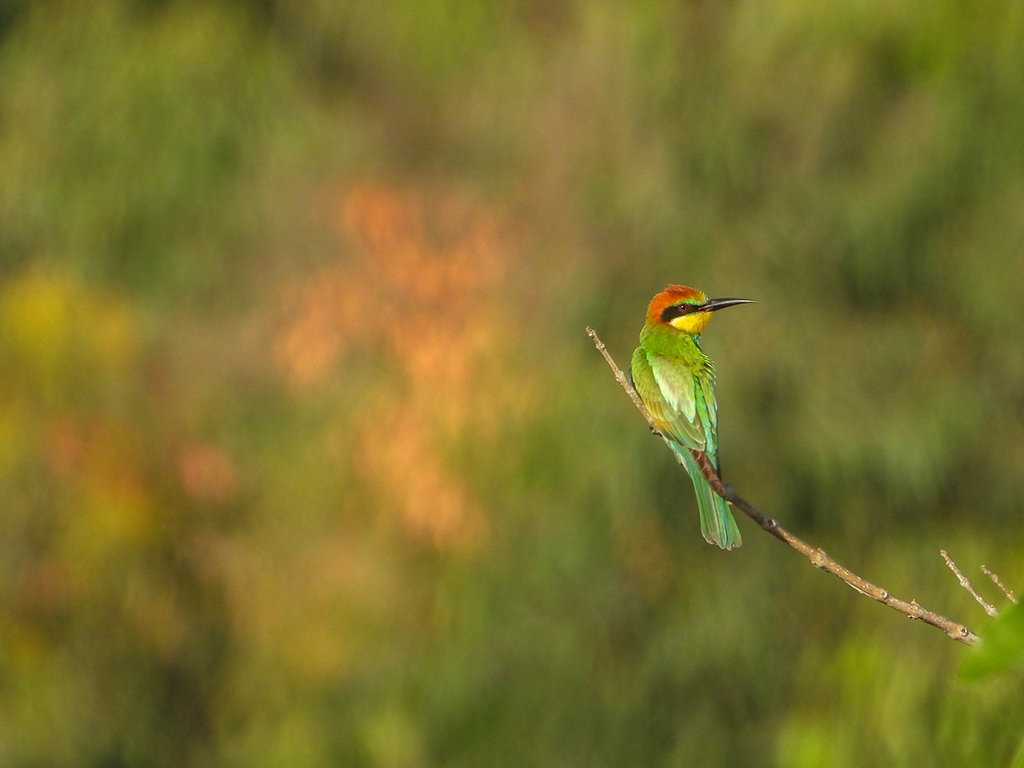 It was an amazing experience to witness this beautiful species in such large numbers. At first, I couldn’t believe my eyes. These birds are so vibrant in color, and their feathers shine even more in the sunlight. Their behavior is very similar to other bee-eaters, but their unique color combination sets them apart. In the mornings, they would chirp all over the grassland, fly around, perch on wires, and hunt insects or bees mid-air. It was such a treat for the eyes to watch the spectacle.