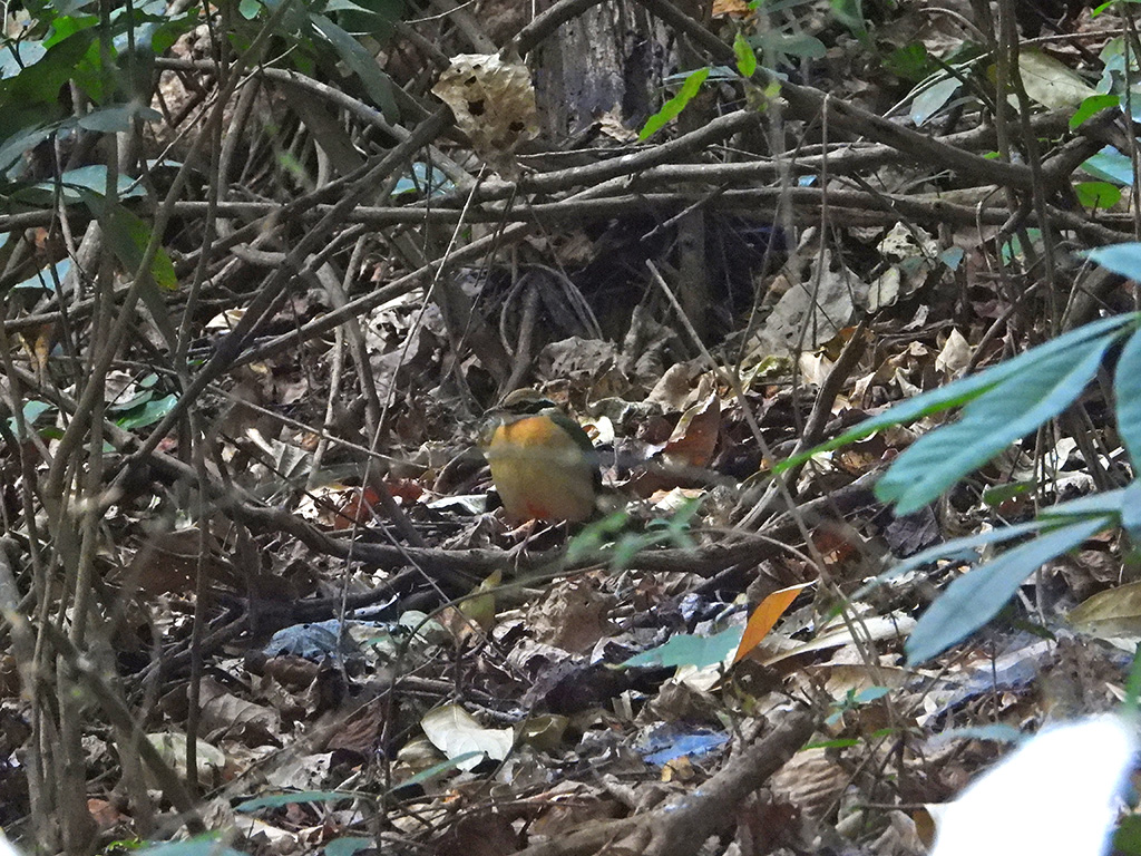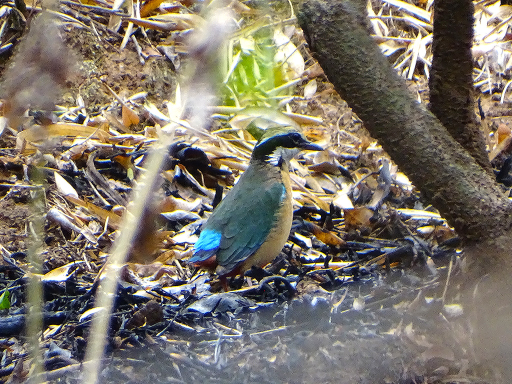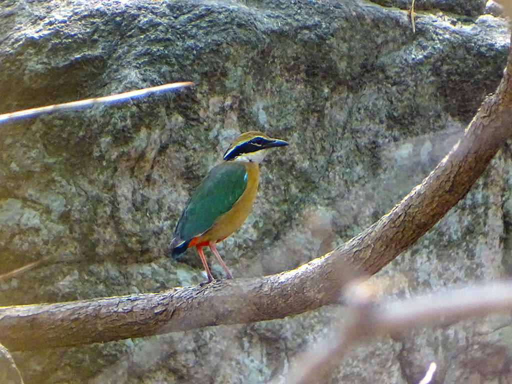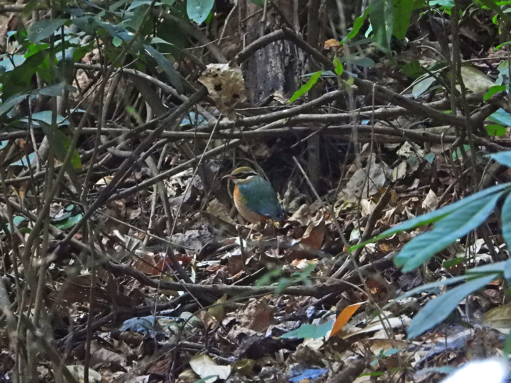 One of the most beautiful birds and probably every birder's favourite Indian pitta has total 9 colors in it's body. That's why it is called "Navrang" also. Colors present in its body are Black, White, Buff, Brown, Pink, Torque blue, Leaf green, Sky blue, Orange-red. In India we find it mostly from April to June, before monsoon it comes down to breed. This individual I have got in Pearl valley, there is a vast bamboo forest area. It was very shy in behaviour, generally it is not a very shy bird in many other places I have seen before. After trying for 3/4 days I managed to capture this pictures from my old camera.