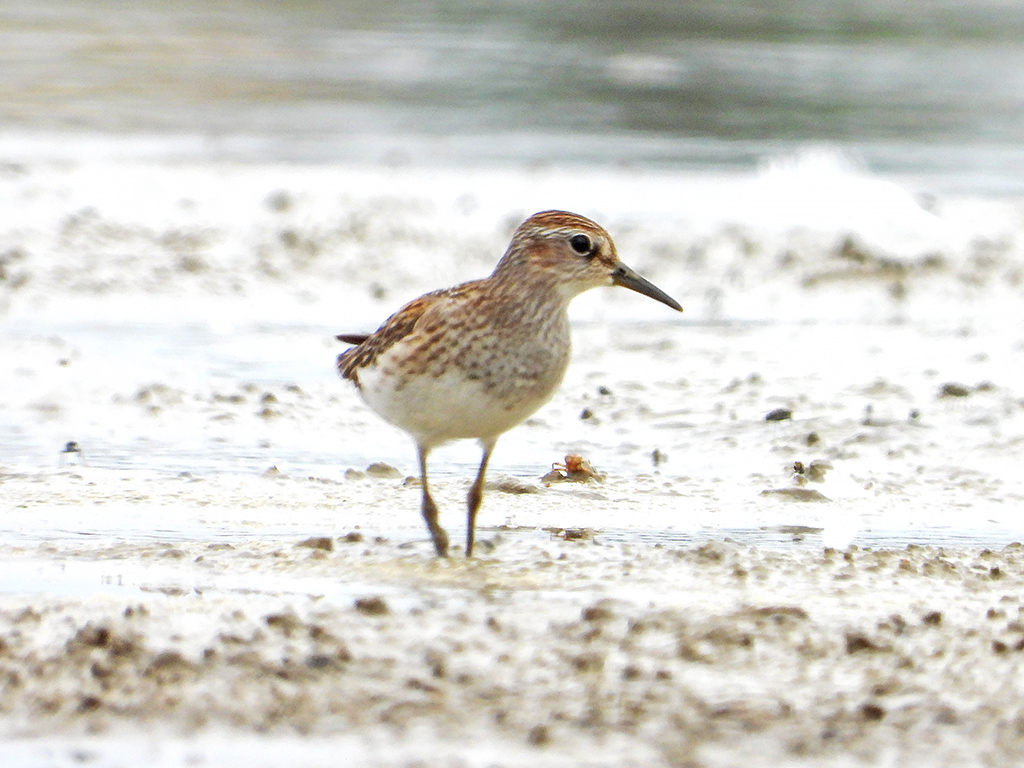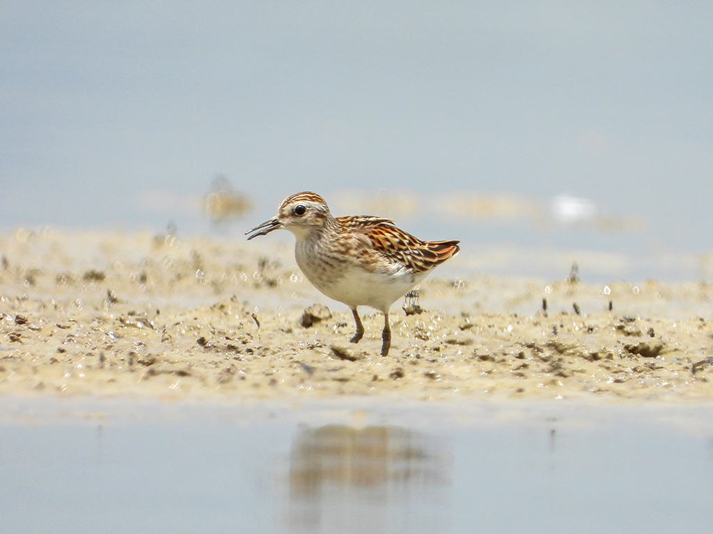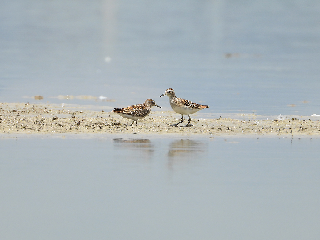 This time, two individuals showed up, probably a pair, in a mixed flock of Little Stints, Temminck’s Stints, Kentish Plovers, Little Ringed Plovers, Terek Sandpipers, and Common Sandpipers. They were constantly foraging on the sandbed from morning until evening. I thought they would take a break in the afternoon when the sun was high, but they didn’t. I realized that these waders live solely for food. Occasionally, they take a bath if it gets too hot, and they breed during the breeding season. But after migration, their only focus is survival through foraging.