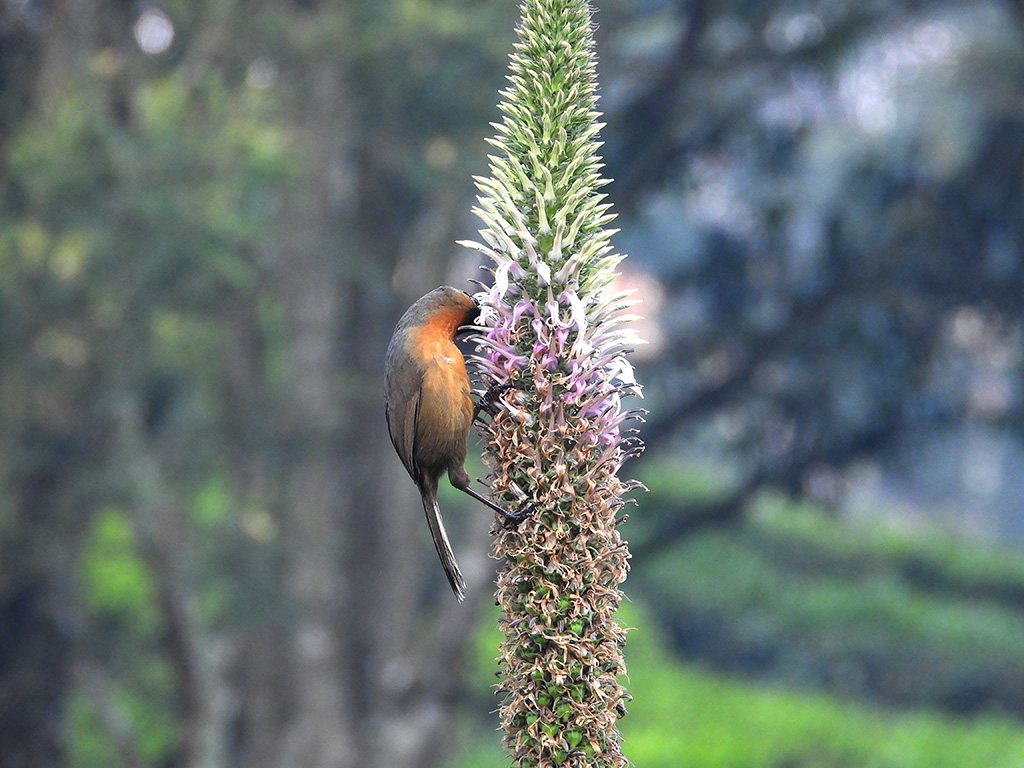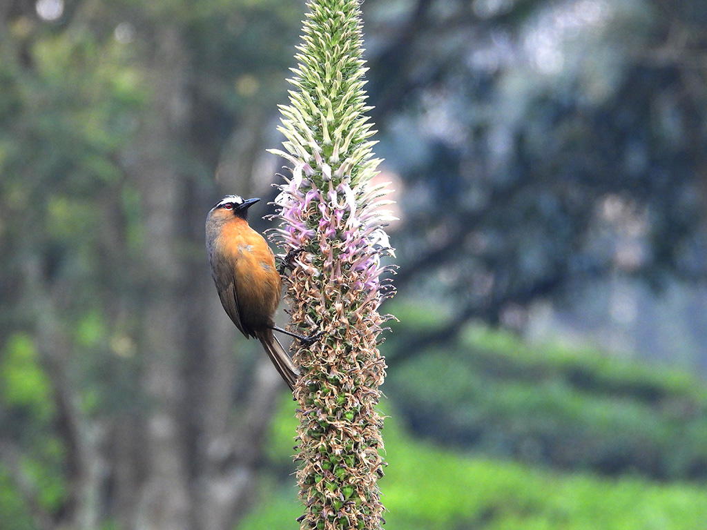 Found in montane forests, forest edges, and secondary growth in high-altitude regions (1,200–2,200 m). Often seen in small groups.
