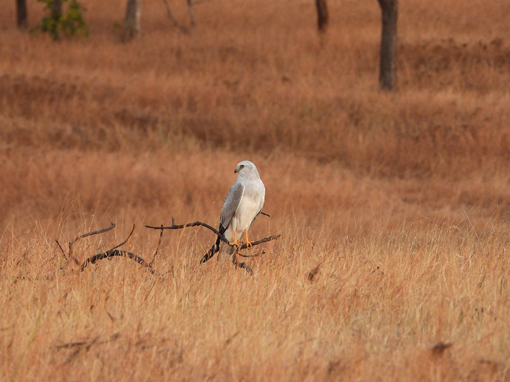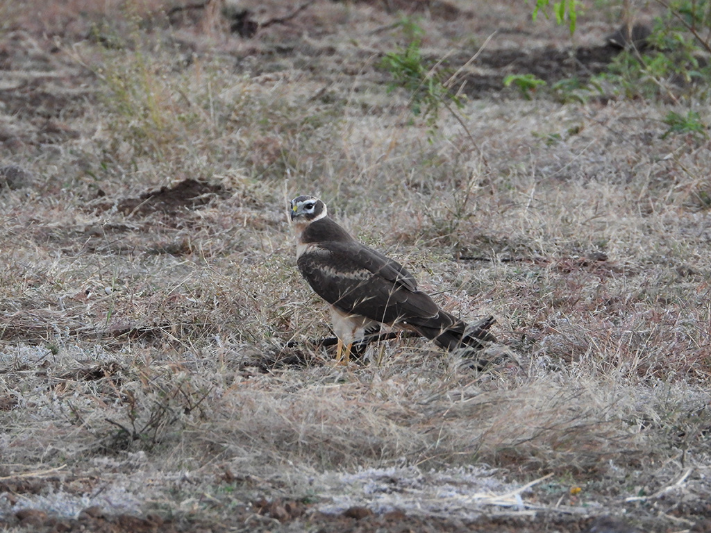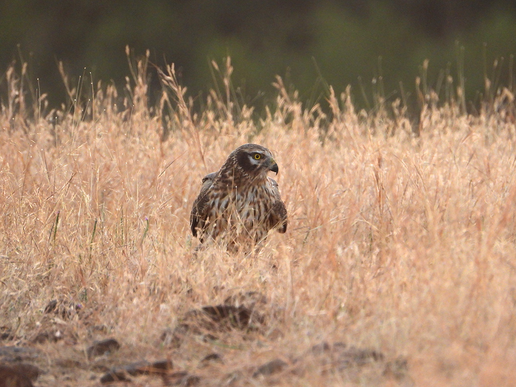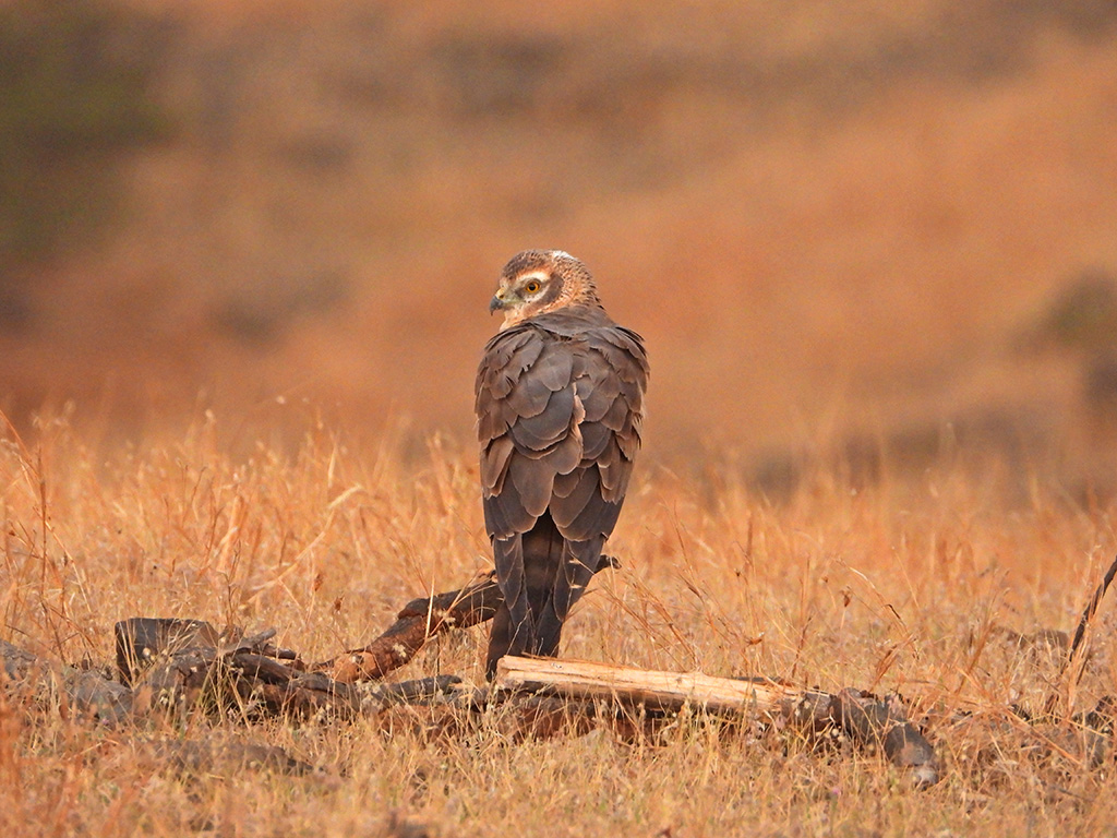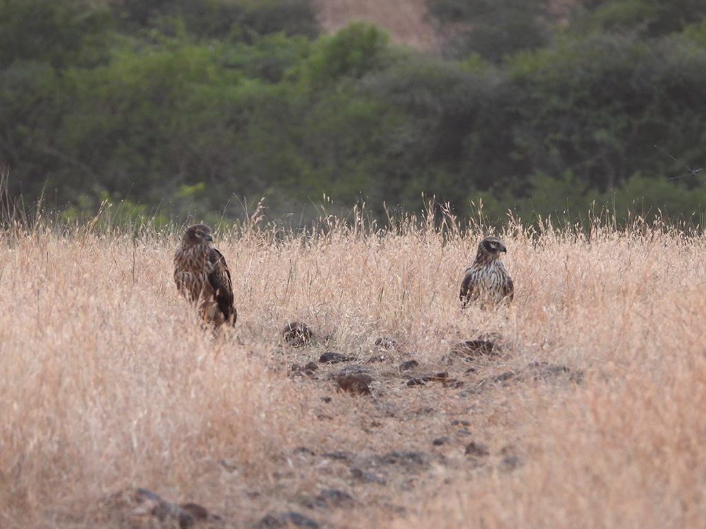 | Approximate size(adult): | Medium-sized harrier, about 40–48 cm in length with a wingspan of 95–120 cm. Males are pale gray above with a white rump and black wing tips, while females and immatures are brown with streaked underparts. Slender body and long wings give it a buoyant flight.