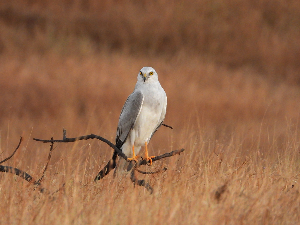 | Habitat: | During winter, prefers dry grasslands, scrublands, agricultural fields, and semi-arid plains. Frequently seen gliding low over open country in search of prey.