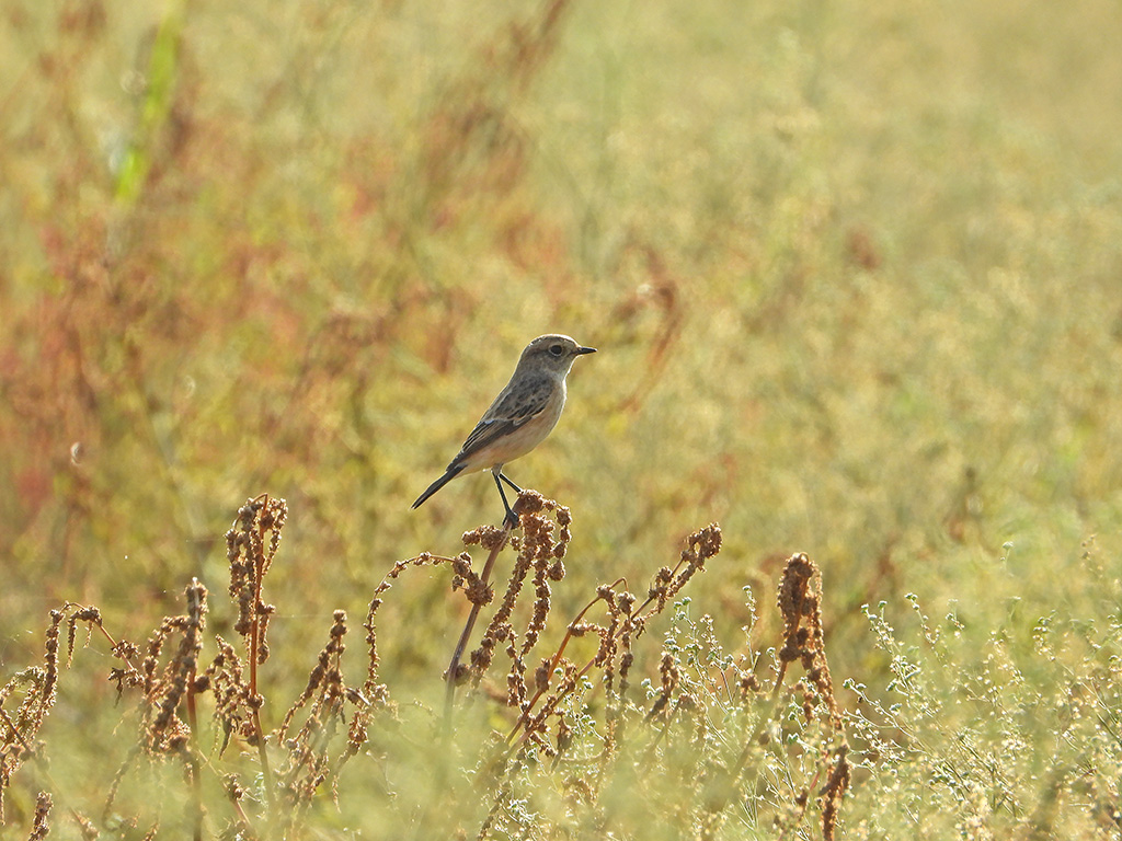 | Habitat: | During winter, found in agricultural fields, open scrub, grasslands, and roadside hedges. Frequently perches on low bushes or posts, watching for insects.