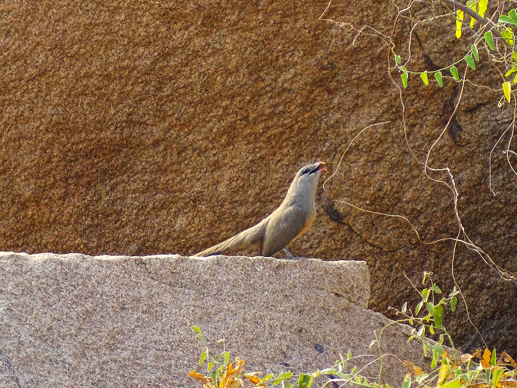 The Sirkeer Malkoha had always been on my wishlist. I never thought I would get to see this bird in Hampi. I was somewhat familiar with its habitat, but after visiting Hampi, I gained a deeper understanding of it. I realized that it wasn't so difficult to spot this bird in Hampi. It responds very well to calls. Trees with dry branches and leaves, as well as large rocky surfaces, make up its ideal habitat. The first time I saw its movement on the ground, I found it amusing—it crawls like a squirrel.