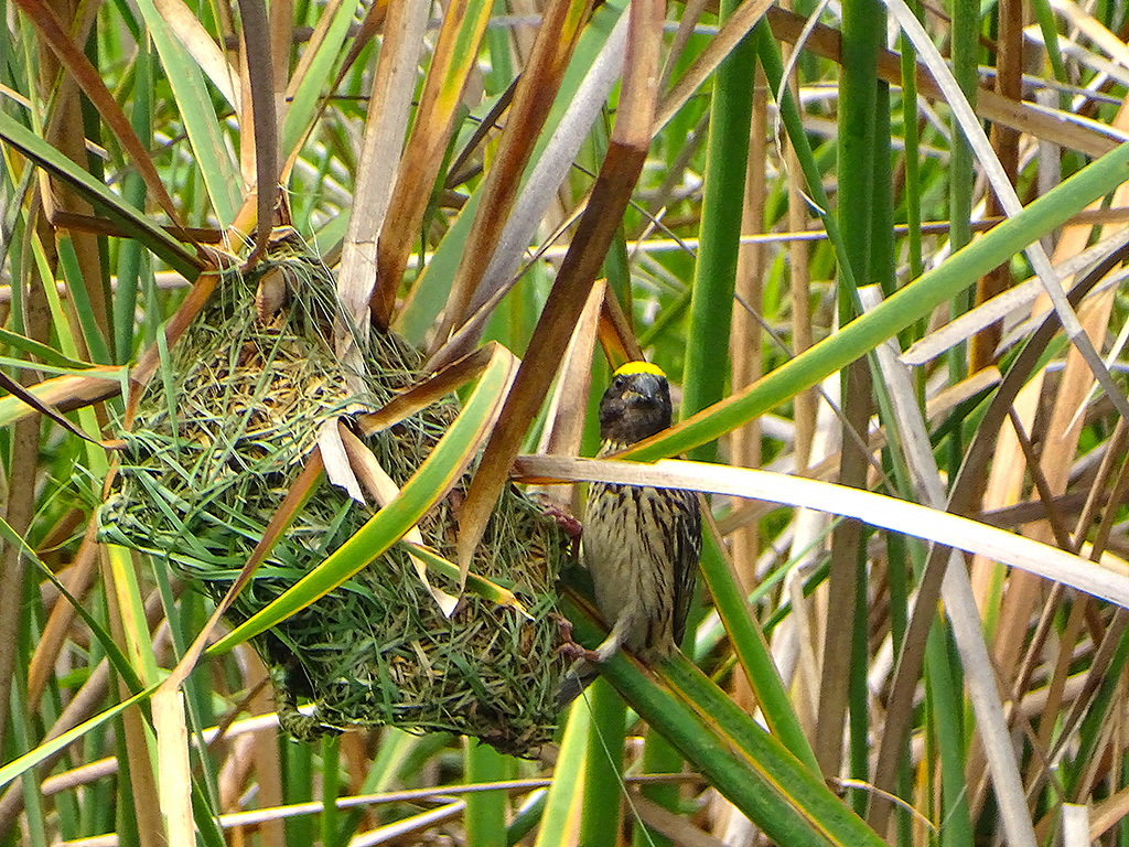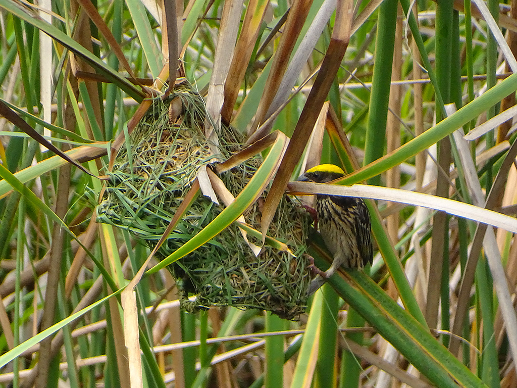 There were around 4 or 5 nests and 3 pairs of streaked weavers. How lovely it is to witness those birds along with their nests!