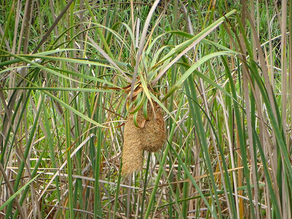 Unlike the Baya, they make their nests in reeds beside a small pond. I noticed that the nest was quite similar but not identical. First of all, they could not make it very large, as the reeds have limited capacity to hold even a minimum weight. I found it incredible how those birds skillfully tied their nests to the reeds.