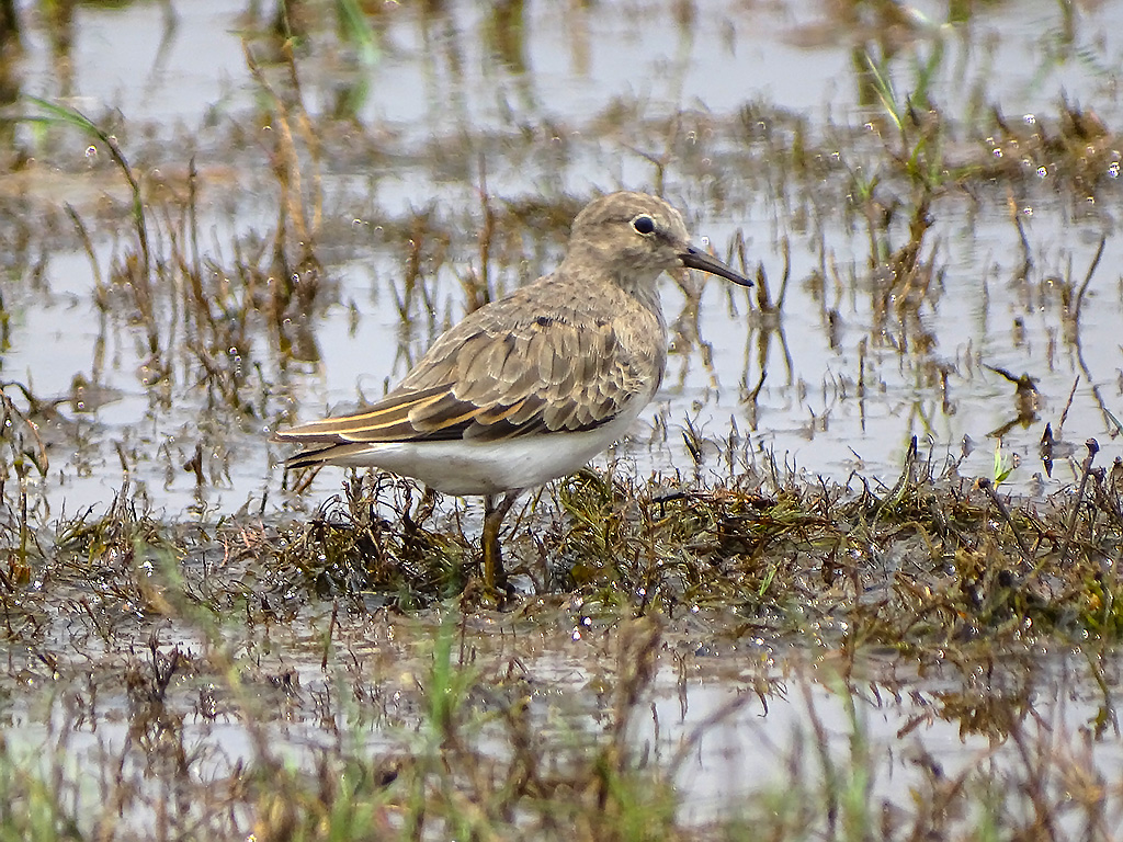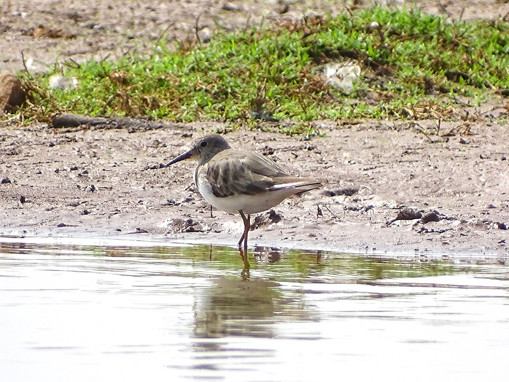 | Approximate size(adult): | A small sandpiper, about 13–15 cm long with a wingspan of 32–35 cm. It has brownish upperparts, white underparts, and distinctive white outer tail feathers visible in flight.