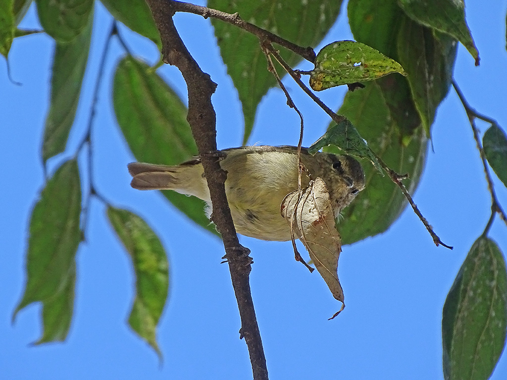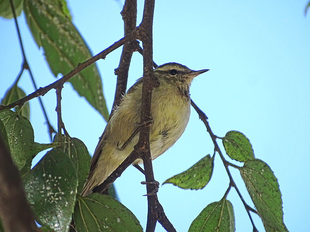 | Approximate size(adult): | A small leaf warbler, about 10–11 cm in length, with olive-green upperparts, yellowish underparts, a distinct pale supercilium (eyebrow stripe), and two whitish wingbars.