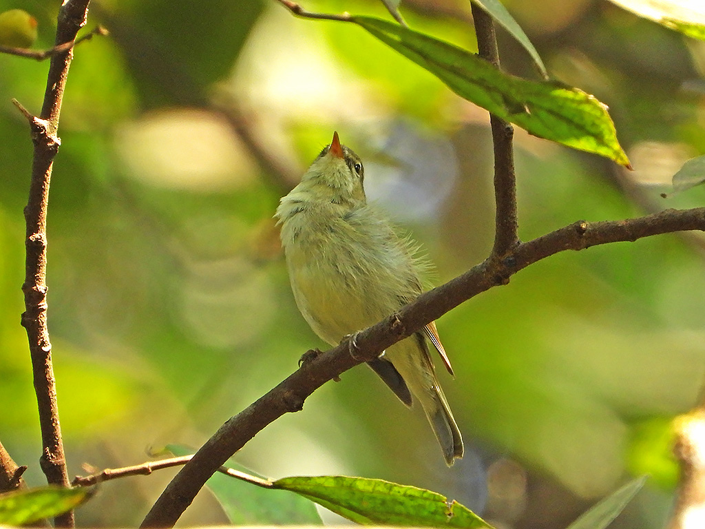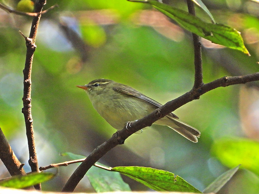 But it was so nice to witness this tiny, beautiful bird for a long time. I remember that, for half the time, the bird was not visible to my fellow birders. I pointed it out and said, "Hey, see, it is still preening!" Yet, they still couldn't see it. Now you understand how tiny and well-camouflaged it was. The feature of the bird that attracts people the most is its eyebrows and orange beak, even though the crown is supposed to be its main feature. However, it's rare to get a clear view of the crown because the bird moves on high-level branches and, most of the time, only offers a belly shot.