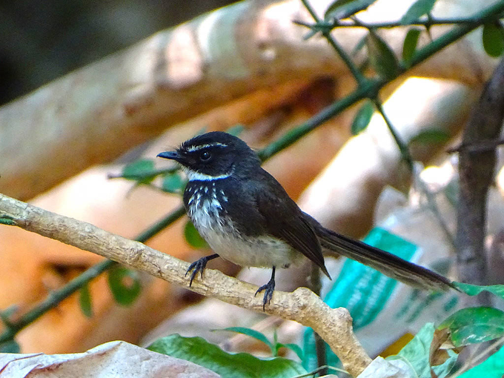 Found in dry deciduous forests, secondary growth, plantations, and urban gardens. Often seen wagging and fanning its tail while actively catching insects in flight.
