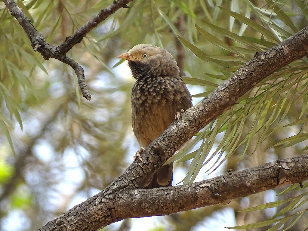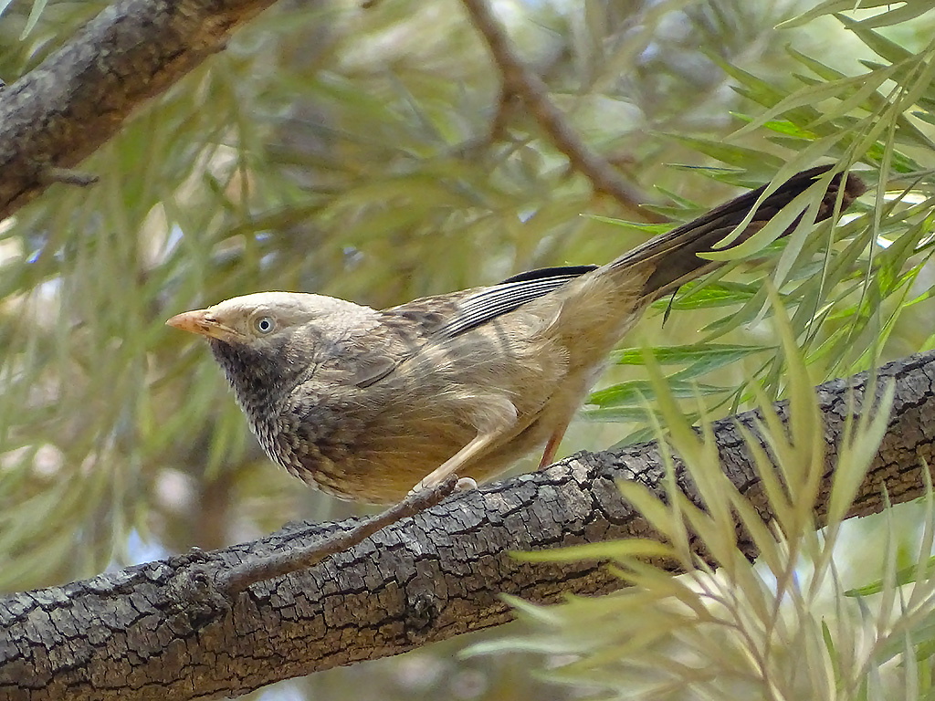 Prefers scrublands, dry forests, gardens, and cultivated fields; often found near human habitation. Lives in noisy flocks of 5–10 birds, locally known as “Seven Sisters.”