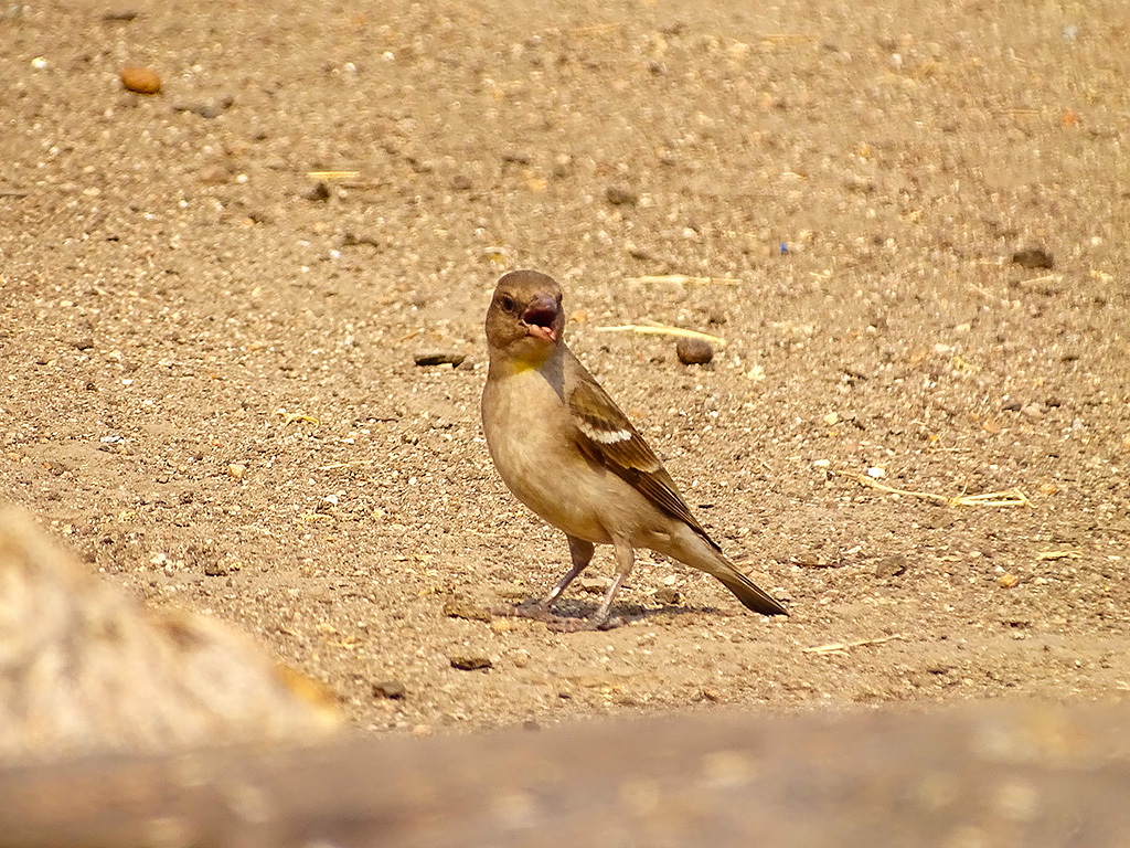 It is such a cute little sparrow, which I feel has a distinct appearance that attracted me every time. I found it inside the Daroji Sloth Bear Sanctuary, foraging on the ground with a companion. Not too shy, but somewhat restless, the bird hopped around with Jungle Babblers, occasionally flying and sitting on a nearby tree branch.